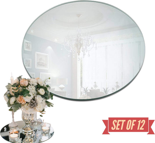 12 Inch round Mirror Plate, Set of 12-1.5Mm Thick Glass Plate Mirror Tiles W/Smooth Edges - Perfect Candle Wedding Centerpiece Table Decorations, Home Accent Wall Decor, & More - PARNOO